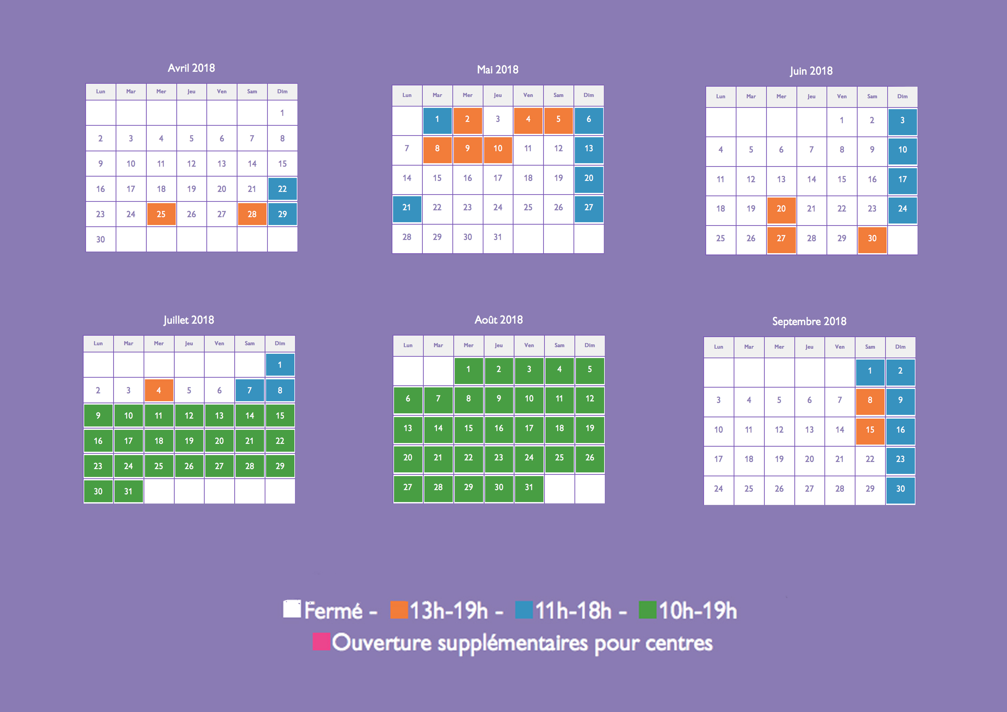 Du lundi au mardi : de 11h à 12h et de 16h à 18h